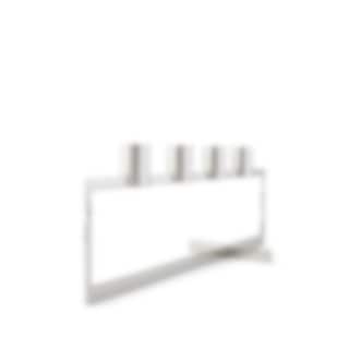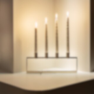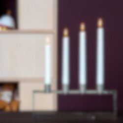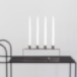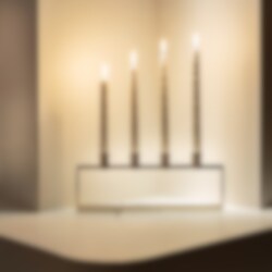 A.D. (Anno Domini) is an Advent candle holder for taper candles. The clean, uncluttered design plays on balance, geometry and symbols. Placed between the third and fourth candle, a stay marks the fourth Sunday of Advent, giving the candle holder an appealing asymmetry while at the same time forming a cross from above. A.D. is made of stainless steel.