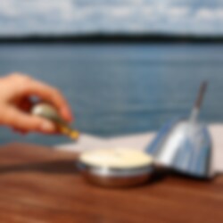 guests be surprised by anything from butter to desserts. Gömma is made of stainless steel with a knob in wood.