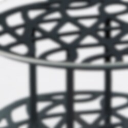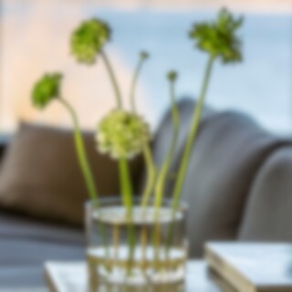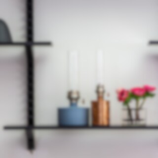 The vase is made of glass with a metal insert. The glass vase is mouth-blown and the metal insert is handmade. The vase is available in four finishes: brass, steel, black and blue-green. The Äng series is also available in the sizes Pond, Big, Optimum, Mega, and Rectangular.
