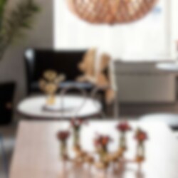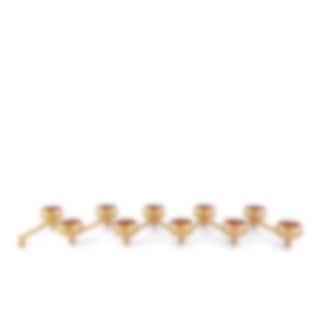 A pleasant source of light for tealights, where you can choose your own shape, a straight line, a circle, a star, a zig-zag or the shape of your choice. CONSTELLA comes in two sizes; with five or ten tealight holders. Other attachments can be added, special fittings for conventional candles, glass insert that works as a small vase for floral decorations, black metal holders for candles and brass star for decoration.