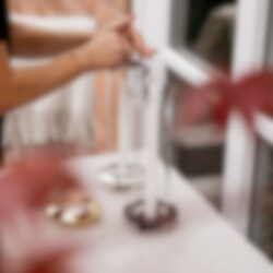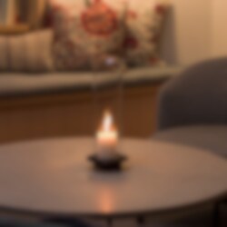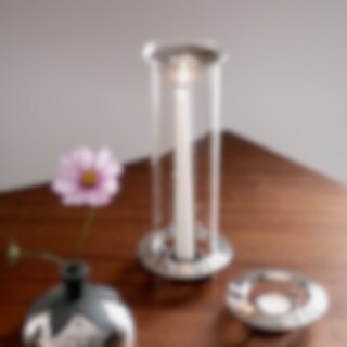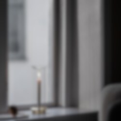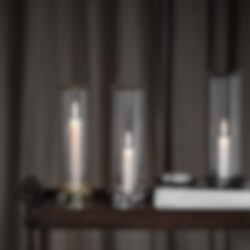 The idea behind Fyr was to create a simple, yet sleek, candle holder behind glass that protects against drafts while also providing oxygen circulation to the lit flame. The design is tailored for a pillar candle between 20-24 cm in height but can also accommodate thicker candles, up to 4 cm in diameter, or tea lights if the inner insert is removed.