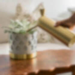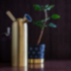 Svante is a watering can in a new elegant take. With its slender design, it will enhance the room while still serving its purpose. It holds one liter of water and is made of brass. It is also available in a copper or nickel plated finish.