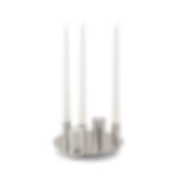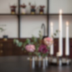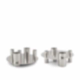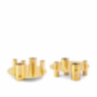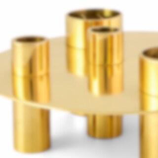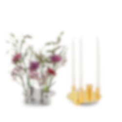 The flowers or the flames are reflected by the main body, giving an optical illusion of depth. It is made of brass and is also available with a nickel plated finish.