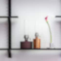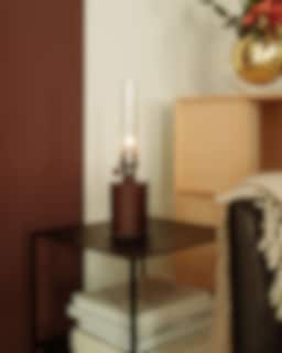 The Patina oil lamps will create a cosy atmosphere wherever it is placed. They can be customized with clear or frosted glass. It is made of stainless steel. This dark red shade is Klong's signature colour and it is available in two sizes.
