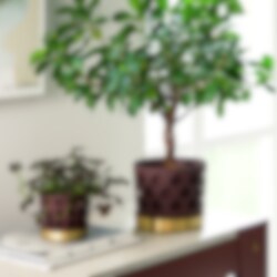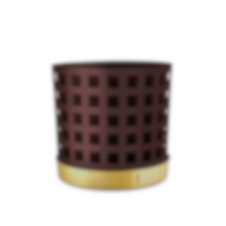 The flower pots’ cut-through pattern creates depth and shadows. It is available in three sizes, two patterns and several colours. The inner and outer pots are made of stainless steel and the tray is made of brass.