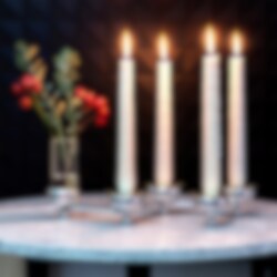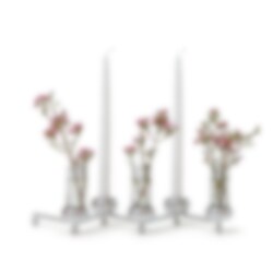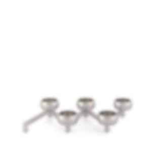 Constella tealight candle holder is a pleasant source of light, perfect for decorating the table. Create a straight line, a star, a circle, or another shape of your choice. It comes in brass and aluminum, and in two sizes; with five or ten tealight holders. Accessories that can be added are vases for flowers, inserts for taper candles or star shaped candle-rings in brass or nickel.