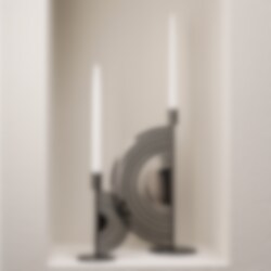 Cirkus are playful candlesticks consisting of one or multiple sections of mobile semicircles. They are made of brass but also availble with a black finish. Cirkus comes in three sizes, with the largest piece being a floor candlestick.
