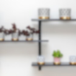 The beautiful perforated pattern on the flower pots creates a nice depth and adds character without drawing attention from the plant. Each pot consists of three parts: an inner pot, an outer pot, and a tray. All are made of thin metal and then carefully coated with a matte, porcelain-like finish. The trays are made of brass. This version of Trio is matte gray and has been taken from Norrgavel's furniture color Warm Gray.