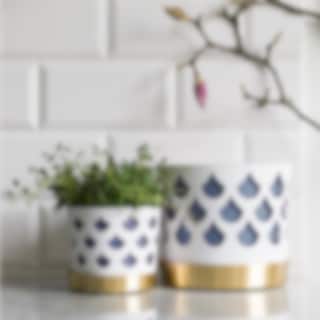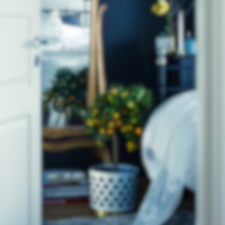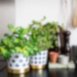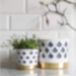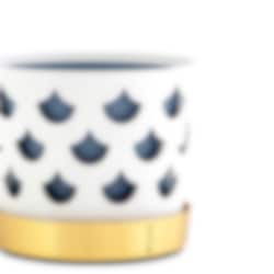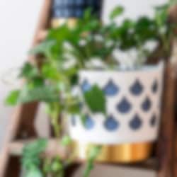 The flower pots’ cut-through pattern creates depth and shadows. It is available in three sizes, two patterns and several colours. The inner and outer pots are made of stainless steel and the tray is made of brass.