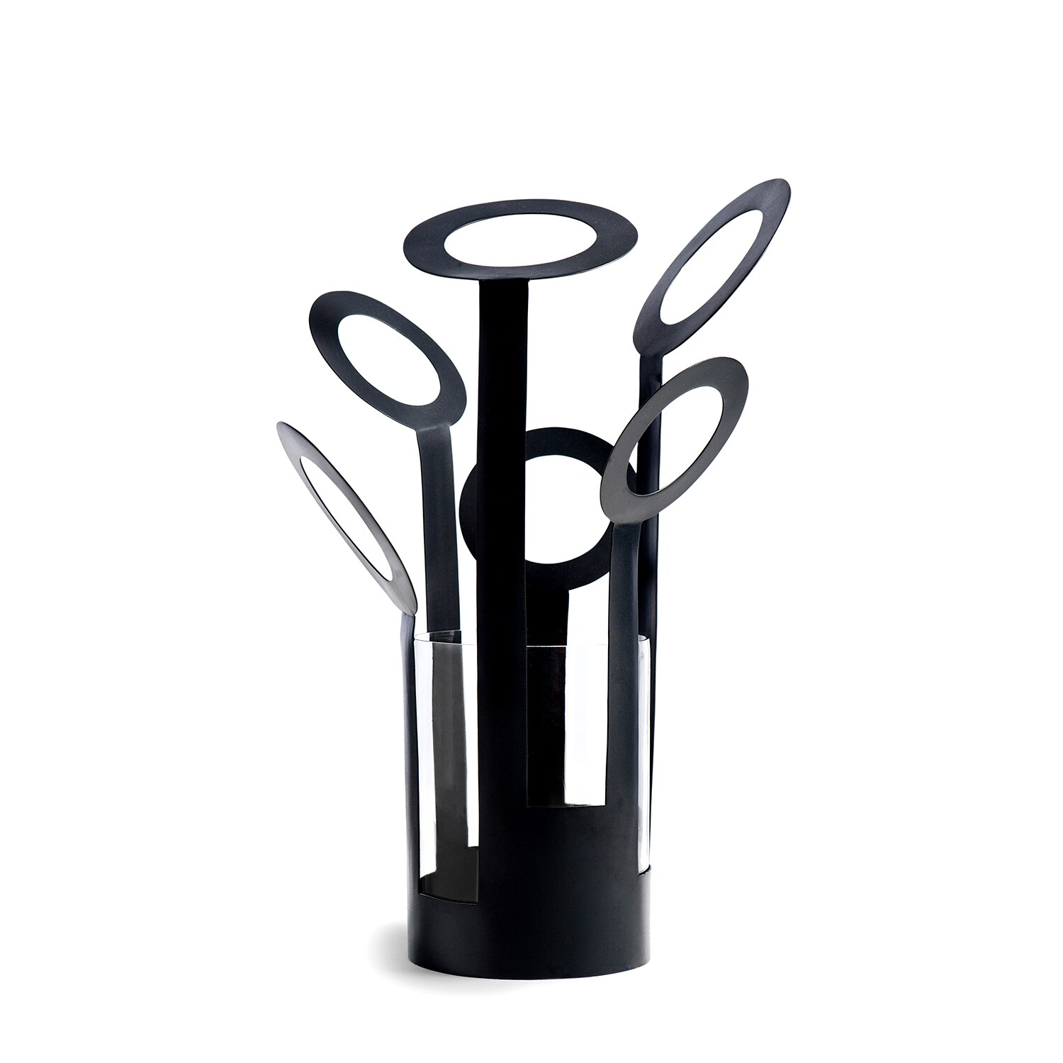 “My mother often made unique flower arrangements and was always on the pursuit of finding beautiful vases. I believe that is why I started thinking of a vase with a water vessel and some kind of construction around it to make that kind of flower arrangements possible. But it was not until Fanny received a gift on her 50th birthday that i visualized the vase. The shape was ought to be playful without being ”trendy” and the material should express something timeless through ageing well.”