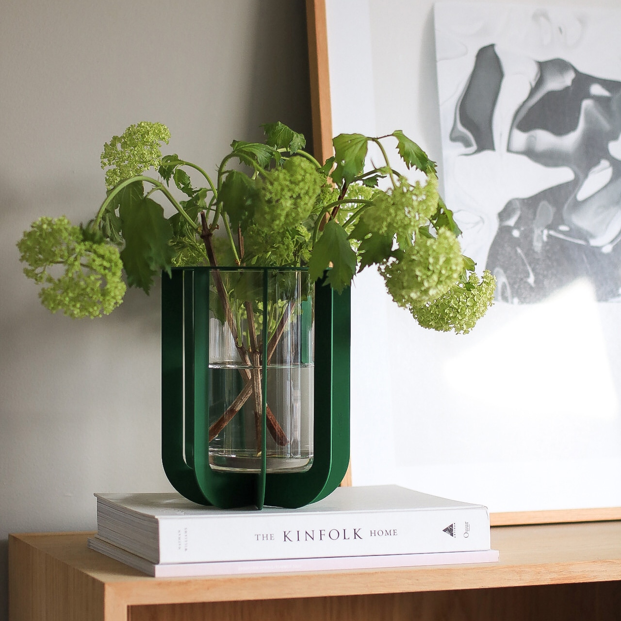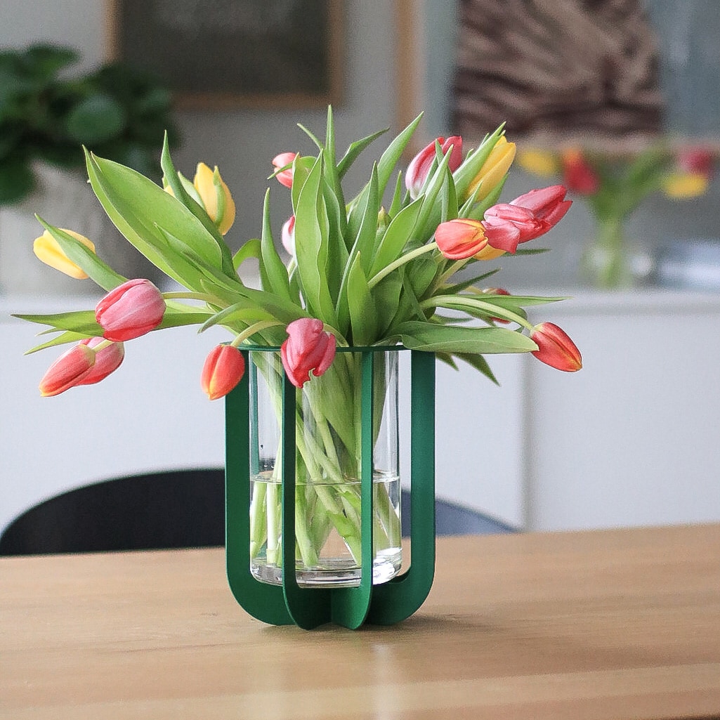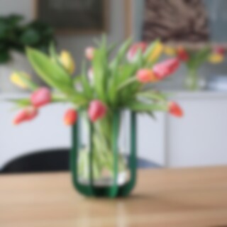 Anki Gneib has expanded her Jazz collection with a beautiful vase, complementing the previous lanterns in the series. The design of the vase is inspired by Art Deco and the flourishing era of jazz in the 1920s, featuring a sleek and sculptural metal structure. The design is both functional and aesthetic, with a glass cylinder that can easily be removed for separate cleaning. The vase’s elegant design is intended to enhance the flowers without overwhelming the overall impression, striking a perfect balance between decoration and function. The vase comes in two finishes: classic steel and an elegant emerald green, offering variation depending on preference.