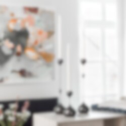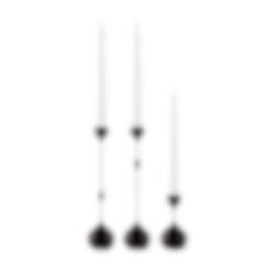 The thin silhouette of the Tender candlestick collection is inspired by Alberto Giacometti’s elongated sculptures, and how backlight can seemingly whittle down a shape to the slenderest proportions. They are made of brass with a nickel plated surface or with an added black finish. Available in one short and two tall versions.