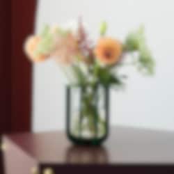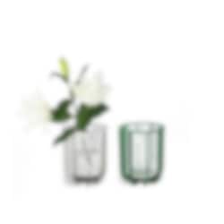 Anki Gneib has expanded her Jazz collection with a beautiful vase, complementing the previous lanterns in the series. The design of the vase is inspired by Art Deco and the flourishing era of jazz in the 1920s, featuring a sleek and sculptural metal structure. The design is both functional and aesthetic, with a glass cylinder that can easily be removed for separate cleaning. The vase’s elegant design is intended to enhance the flowers without overwhelming the overall impression, striking a perfect balance between decoration and function. The vase comes in two finishes: classic steel and an elegant emerald green, offering variation depending on preference.