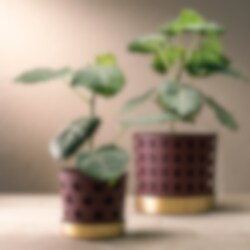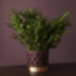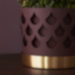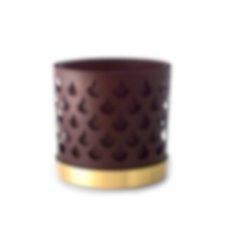 The flower pots’ cut-through pattern creates depth and shadows. It is available in three sizes, two patterns and several colours. The inner and outer pots are made of stainless steel and the tray is made of brass.
